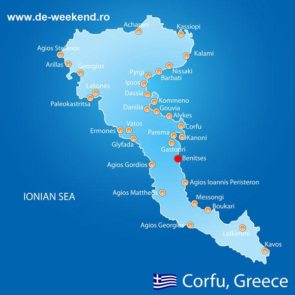 Benitses din Corfu, un fost sat de pescari unde muntii coboara pana la mare, cu izvoare de apa si vestigii istorice, pare sa fie un adevarat paradis elen. In Benitses, muzica traditionala se aude la tot pasul si casele grecesti sunt impodobite cu flori. Decorul unic si evenimentele din Benitses garanteaza un concediu de neuitat pentru cei care vin aici.
