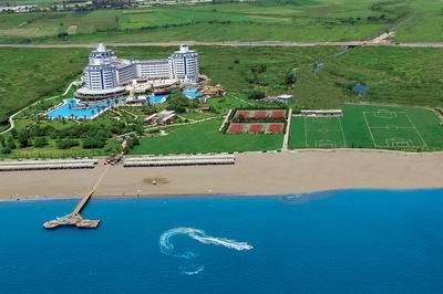 Situat pe una dintre cele mai frumoase plaje ale Marii Mediterane, la doar 10 km de centrul Antalyei si la 8 km de aeroport pe o suprafata de 112 000 m2 din care 400 m2 de plaja privata.