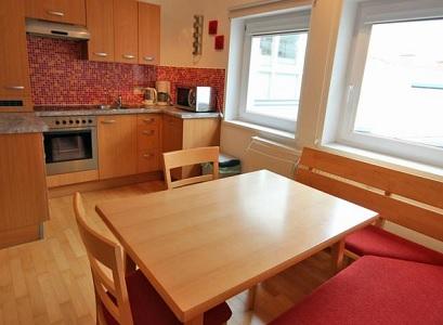 Foarte confortabile, modern si spatioase (53 mp) pentru 4 persoane sunt dotate cu dormitor dublu, living cu o canapea dubla, bucatarie complet echipata (cuptor cu microunde, aragaz cu cuptor, frigider, filtru de cafea), baie cu dus si toalete separate. Apartamentele pentru 6 - 7 persoane (85 mp) contin 1 dormitor cu pat pentru un copil, 1 dormitor cu 2 paturi separate, living cu canapea dubla, bucatarie complet utilata (cuptor cu mocrounde, vesela, cuptor, plita cu 4 ochiuri, frigider, filtru de cafea), baie si toaleta.