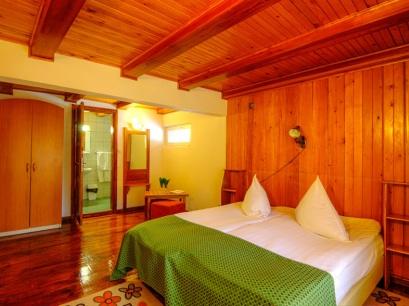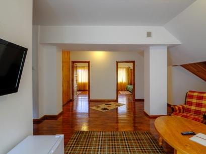 Are o capacitate de 16 camere dispuse astfel: 6 camere duble, cu pat matrimonial, televizor si baie proprie, 1 apartament cu doua camere, sufragerie si baie. Camerele au terasa.
