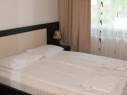 Hotelul Siret dispune si de 8 apartamente complet renovate dotate cu mobilier nou, living cu canapea extensibila, dormitor cu pat matrimonial, tv cablu, racitor (fara bauturi), balcon, 2 grupuri sanitare cu dus (cabina de dus), pardoseala din gresie.