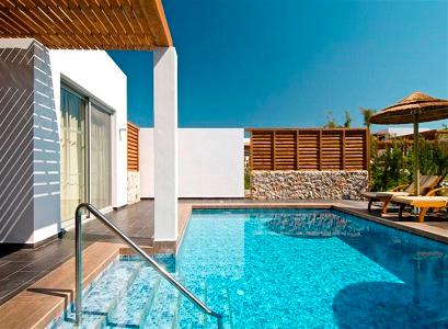 Hotelul dispune de 198 camere din care 30 junior suite si 13 suite cu piscina privata.Toate camere sunt dotate cu aer conditionat, TV satelit, minibar, seif, telefon, facilitati pentru ceai/cafea, uscator de par, halate de baie/ papuci.