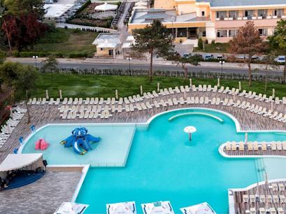 Restaurant, baruri, parcare proprie gratuita (in limita locurilor disponibile), loc de joaca pentru copii, internet wireless gratuit in tot hotelul, sezlong la plaja (in limita locurilor disponibile), piscina in aer liber , dusurile cervicale, banchete cu hidromasaj si gheizerele, aqua vortex, 3 culoare pentru inot, tenis de masa, darts, scaune pentru bebelusi la restaurant si patut pentru bebelusi in camere. Programe create special pentru copiii intre 3 si 14 ani, piscina cu mini aquapark, animatori si loc de joaca de exterior cu trambulina, tobogane, leagane si casute, centru Spa: Mera Balnea & Spa si pachete speciale de tratament.
