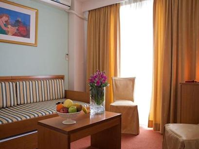 Hotelul dispune de camere simple dar elegant mobilate. Toate camerele sunt dotate cu: balcon cu vedere la mare, aer conditionat, incalzire, telefon, patut pentru copii. Cateva camere sunt dotate cu frigider, mini bar si living.